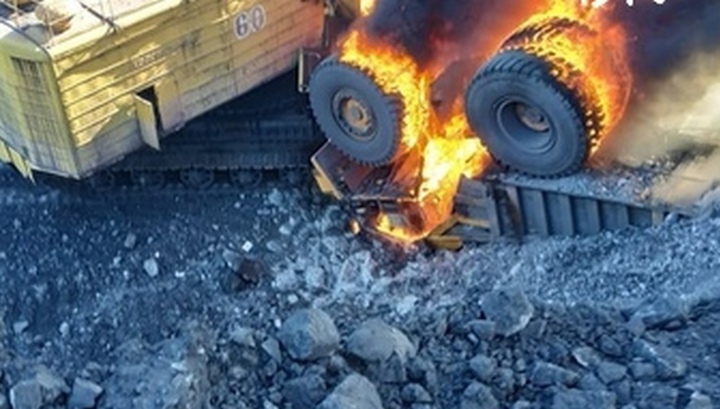 На кузбасском разрезе БелАЗ врезался в экскаватор и загорелся