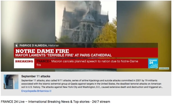 YouTube принял горящий Нотр-Дам за фейковое видео