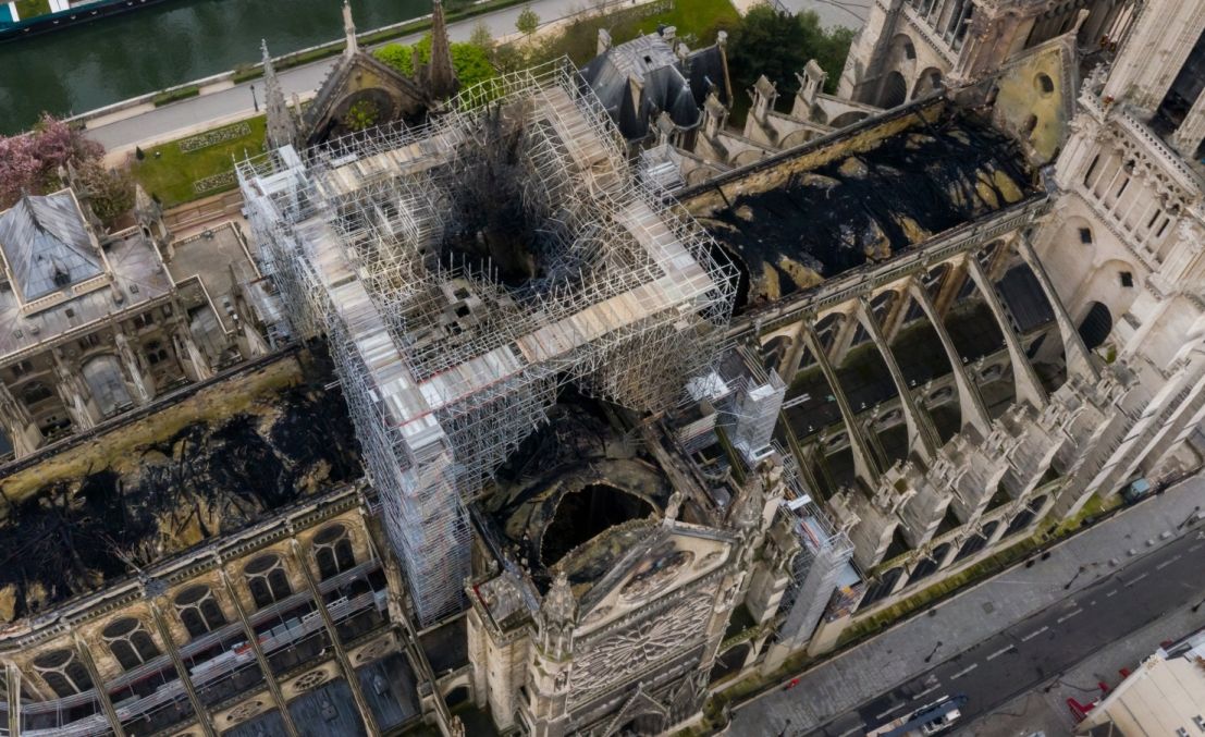 Charlie Hebdo выпустил обложку с горящим на голове Макрона Нотр-Дамом | Фото Нотр-Дама с высоты квадракоптера