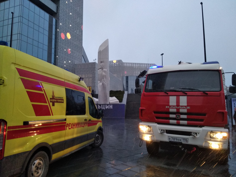 Через несколько минут вдруг заработала сирена. В динамиках на всех этажах раздалось: "Внимание, пожарная тревога! Всех просим покинуть здание Ельцин-центра". Как выяснилось позже, поступил сигнал о минировании.