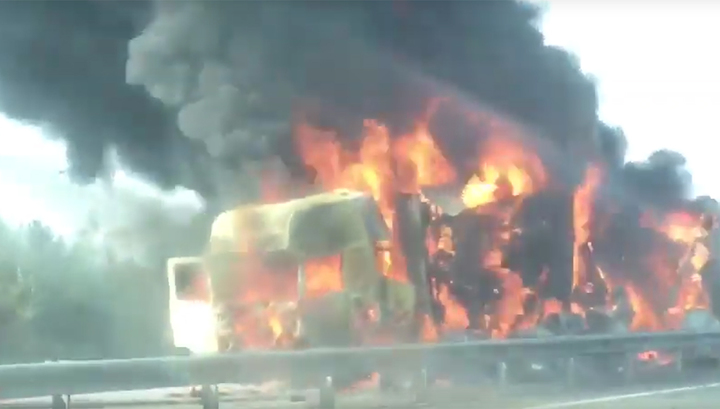Причины пожара не озвучиваются. По словам очевидцев, фура прижалась к отбойнику и загорелась в результате аварии, в то время, как другие участники ДТП вылетели на обочину. Источник