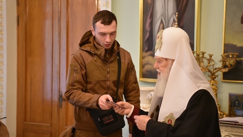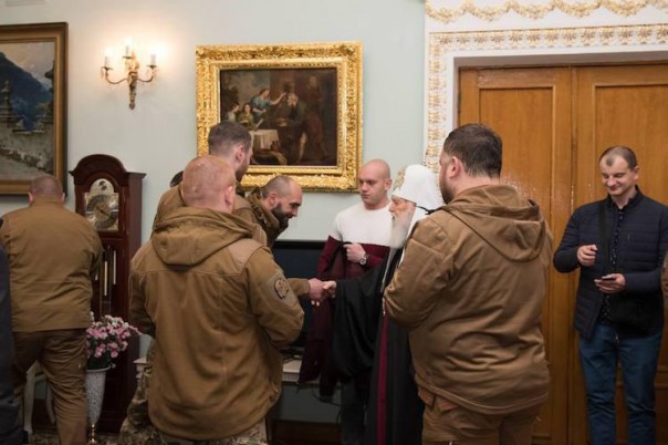 Глава "Киевского патриархата" и почетный патриарх новосозданной ПЦУ Филарет произвел награждение членов бандеровской группировки С14 "за любовь и жертвенность".