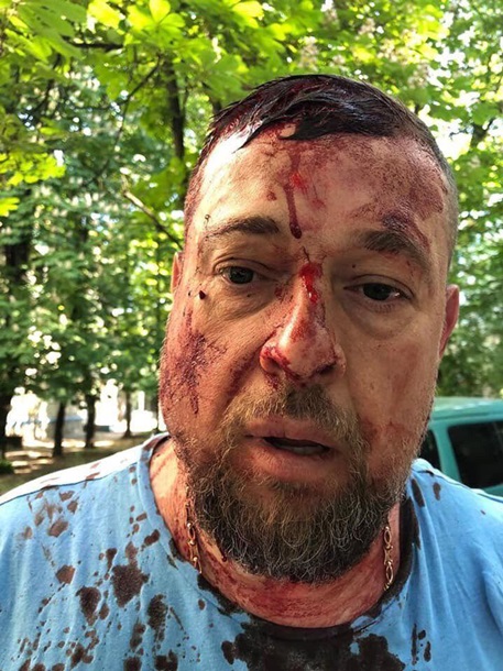 Избитый укроозабоченный Национального Корпуса Игорь Блохин связывает нападение со своей деятельностью в рамках инициативной группы.