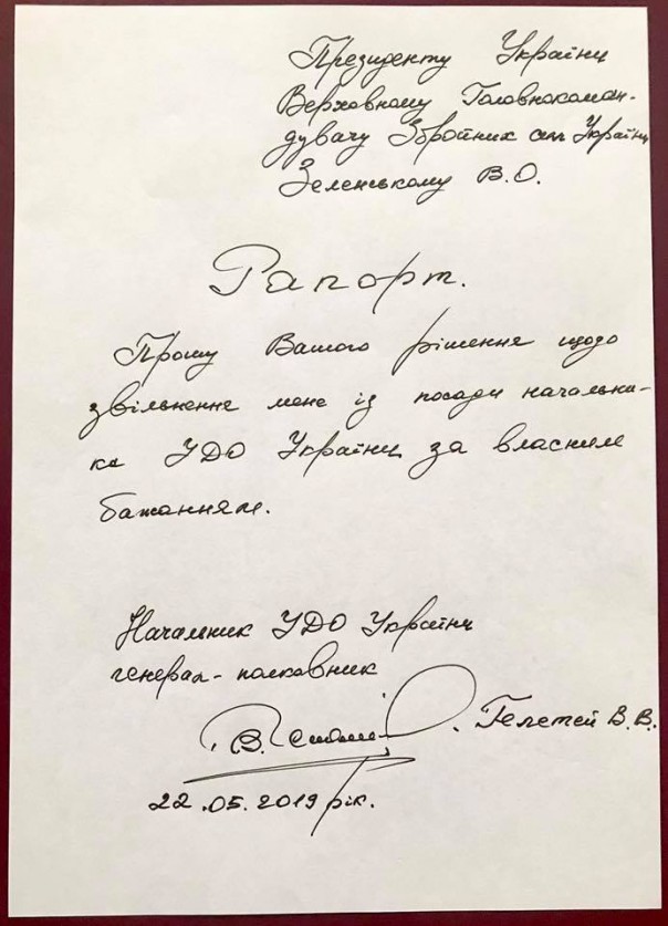 “Идя с должности руководителя Управления государственной охраны Украины, я буду продолжать свою преданную службу Государству, Народу, Закону”, – отметил Гелетей.