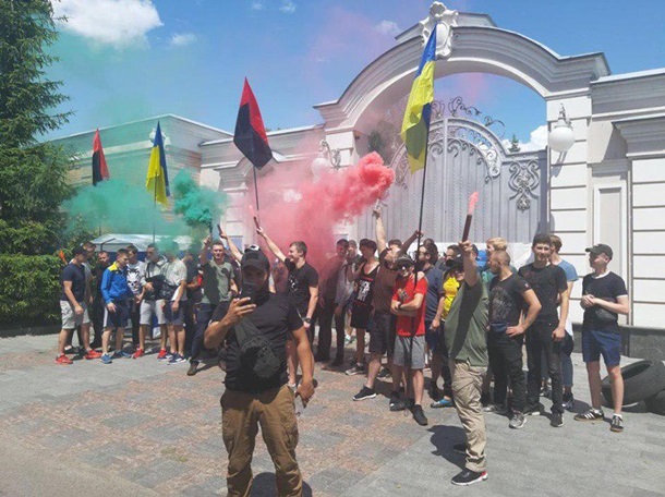 Нацисты ОУН пикетируют дом Порошенко: горят шины и фаеры