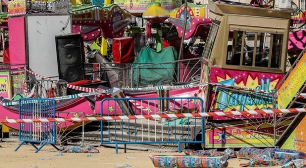 Во время движения главная опора карусели раскололась пополам и части конструкции привалили собой людей. Среди пострадавших много детей.