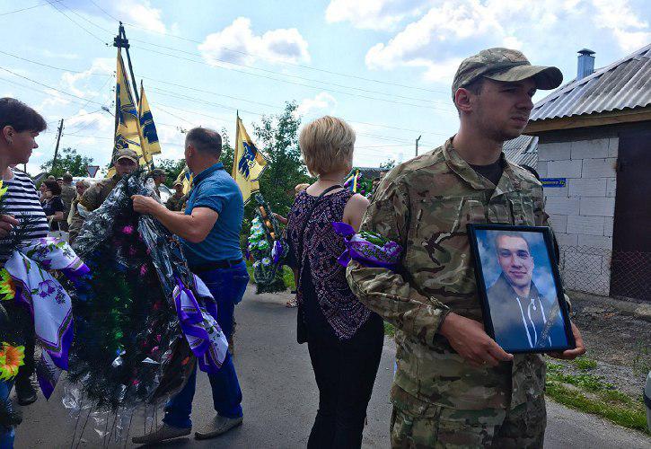 К сообщению также были приложены фотографии с траурной церемонии, в которой помимо родственников погибшего также приняли участие его «побратимы», облаченные в камуфляж и державшие в руках флаги с нацистской символикой. Источник