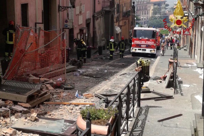 По предварительной версии, мощный взрыв произошел из-за утечки бытового газа. В агентстве АНСА пишут, что ранее перед зданием мэрии проводили работы по строительству дороги.