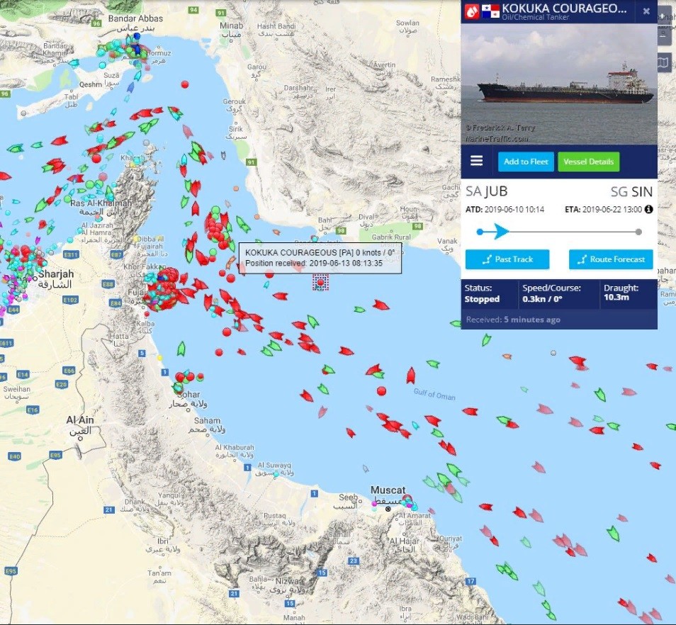 "Kokuka Courageous остается в данном районе и не подвергается опасности затопления. Груз с метанолом на борту в сохранности", — добавил он.