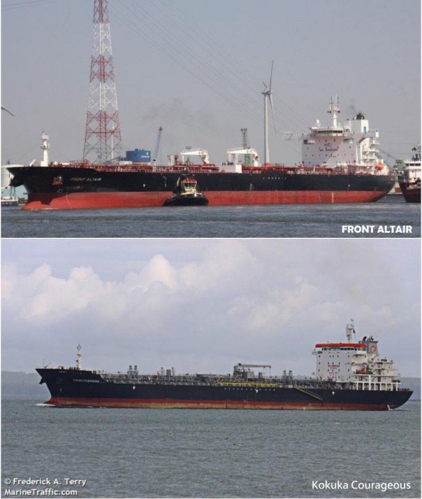 Установлено, что это Front Altair (который ходит под флагом Норвегии) и Kokuka Courageous (Панама).