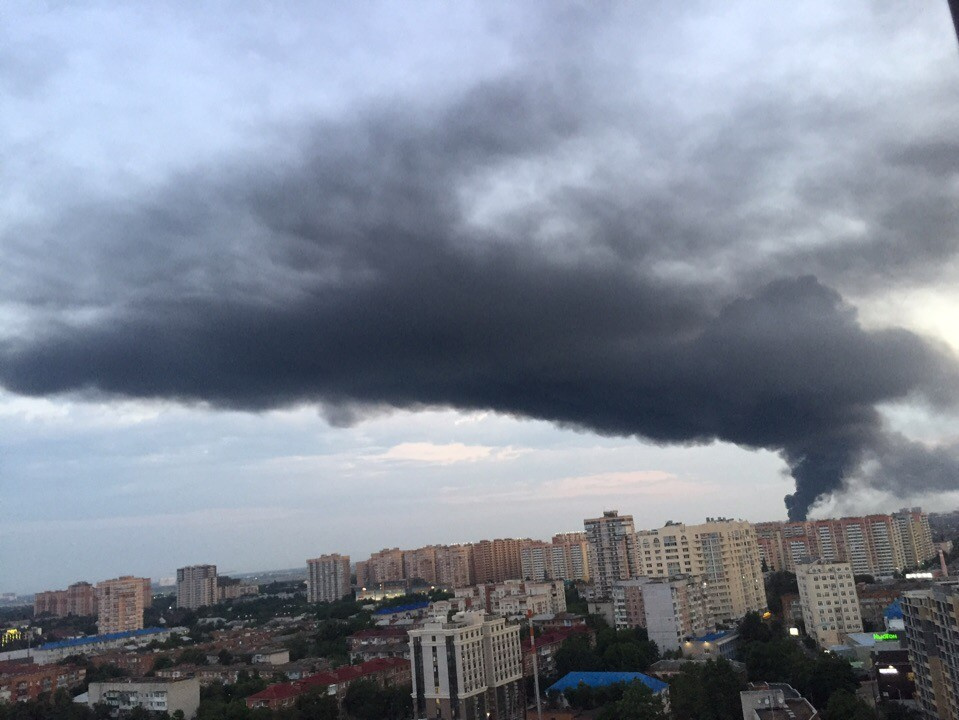 В Краснодаре горит шинный склад, облако густого чёрного дыма затянуло весь город и близлежащие районы. Об этом пишут местные жители в социальных сетях.