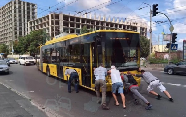 В Киеве пассажиры толкали сломавшийся троллейбус