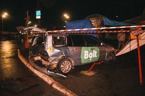 "По данным свидетеля происшествия, Toyota мчалась на скорости около 120 километров в час. Автомобиль несколько раз чуть не спровоцировал ДТП. В районе Троещинского рынка на проспекте Генерала Ватутина Camry влетела в едущий впереди автомобиль службы такси Bolt. От сильного удара такси влетело в ларек с шаурмой возле рынка. К счастью, пострадавший водитель отделался ушибами", – говорится в сообщении.