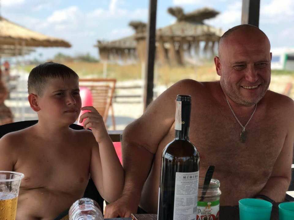 На фото рядом с полным сыном сидит заметно поправившийся лидер боевиков Ярош, а на столе рядом с ними стоит бутылка вина.