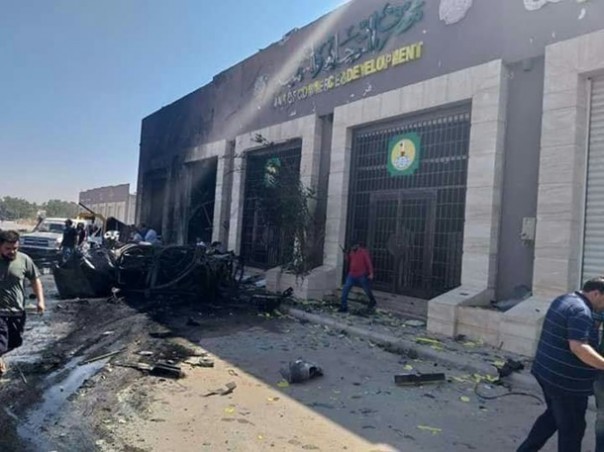Отмечается, что сдетонировало самодельное взрывное устройство, прикрепленное к автомобилю. На месте происшествия была видна как минимум одна сгоревшая машина ООН.