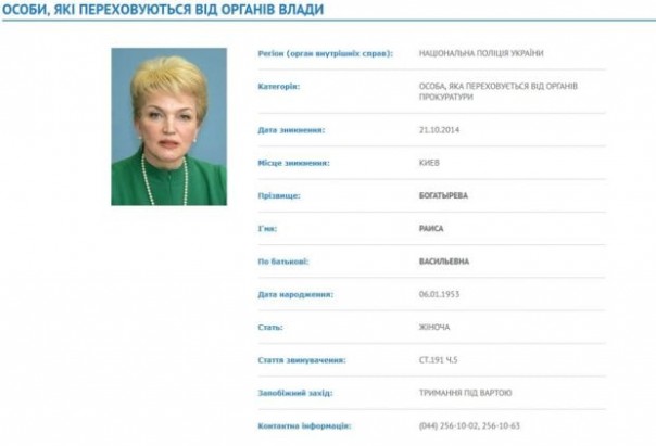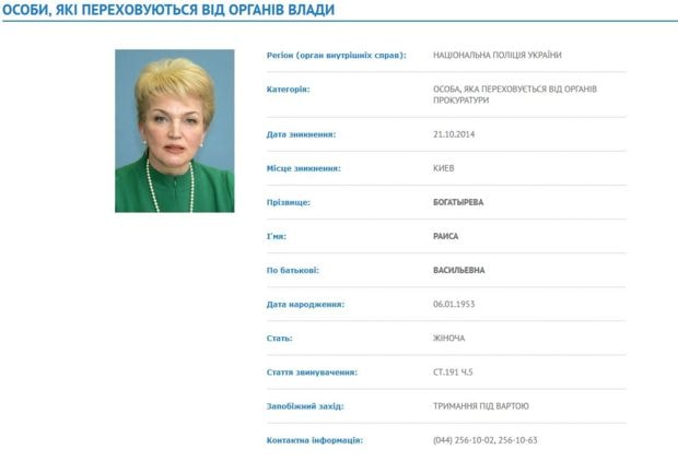 В Киеве по прилету из Минска арестована Раиса Богатырева, экс-министр здравоохранения времен Виктора Януковича. После Евромайдана она покинула Украину из-за возбуждения уголовного дела по махинациям с бюджетом Минздрава (по некоторым данным, Богатырева жила в крымском Форосе).