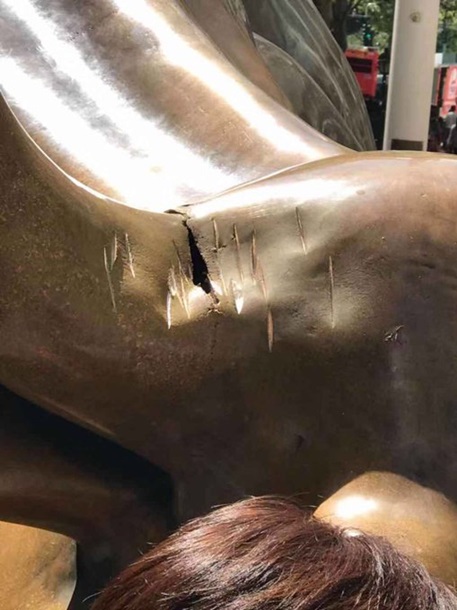 Мужчина ударил статую металлическим предметом, похожим на инструмент банджо. Поврежденным оказался правый рог быка.