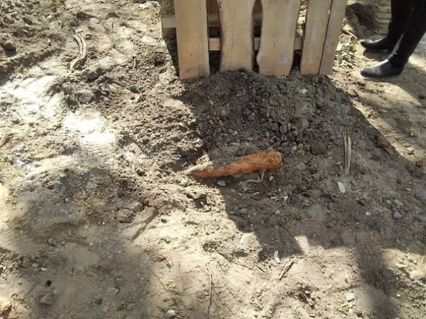 При укладке брусчатки на расстоянии 20 м от здания школы обнаружен артиллерийский снаряд времен Второй мировой войны.