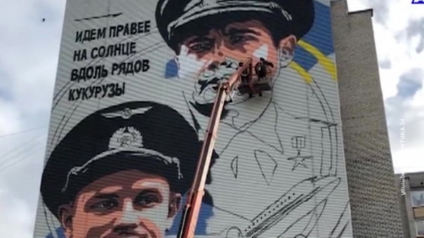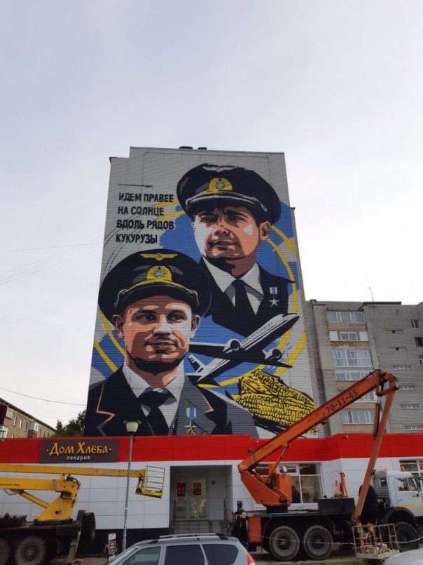 В Сургуте появилось огромное граффити, посвященное посадке самолета в кукурузе