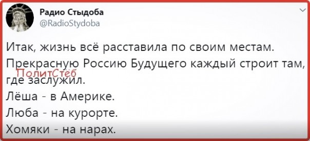 А ты не забыл продонатить? Семья Навальных передает привет хомякам из Калифорнии, а Люба Соболь с Кипра