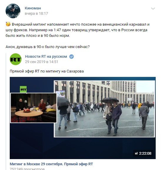 Ранее Алексей Навальный отреагировал на твит Симоньян, в котором сравнивалось число просмотров прямого эфира RT о митинге в Москве 29 сентября и онлайн-трансляции канала "Навальный Live". При этом он использовал слова "чучундрики" и "свинобомжи".