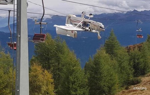 В итальянских Альпах легкомоторный самолет запутался в проводах горнолыжного подъемника. Об этом накануне сообщило BBC.
