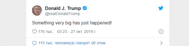 Между тем президент США Дональд Трамп ранее опубликовал на своей странице в Twitter пост, в котором заявил,что «произошло что-то крупное». Однако, о чем конкретно идет речь, американский лидер не уточнил.
