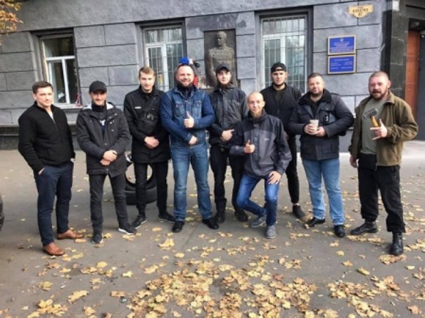 После нескольких часов стараний националисты всё-таки демонтировали барельеф маршала Георгия Жукова со здания Приморского военкомата.