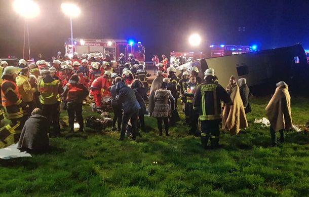 Инцидент произошел в ранние часы недалеко от Гамбурга на автобане номер 1. Семь человек находятся в тяжелом состоянии. Всего в автобусе находились 48 человек.