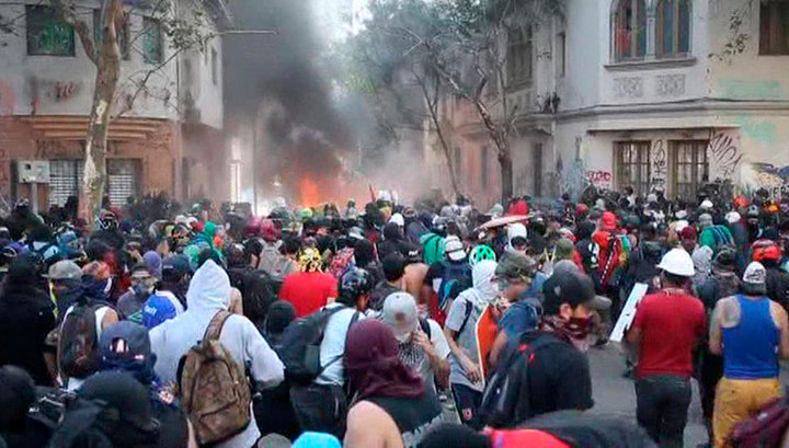 В Чили — новая волна беспорядков. Участники антиправительственных демонстраций разграбили и подожгли отель и ресторан в чилийской столице.