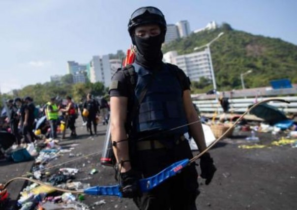 Не стихающие протесты в бывшем колониальном анклаве Англии Гонконге вышли на новый уровень противостояния. Протестующие в Гонконге, по заявлению полиции, стали стрелять в полицейских из луков и арбалетов. У многих в руках вместо зонтиков, символа протестов, появились копья из бамбука. В ответ в протестующих летят резиновые пули и слезоточивый газ.