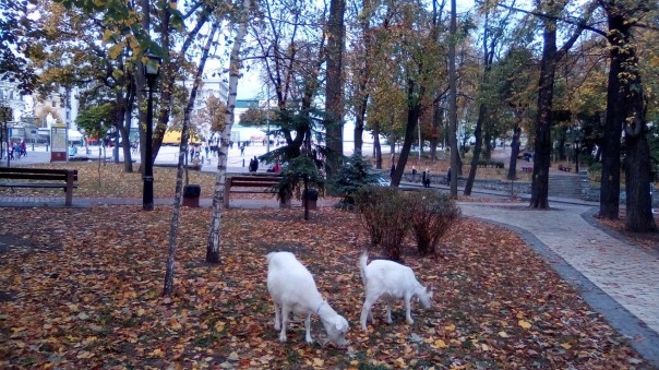 Пейзажи европейской столицы. У МИД Украины в Киеве пасутся козы