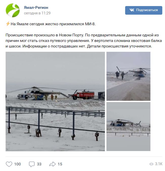 Вертолёт Ми-8 с 22 пассажирами совершил жёсткую посадку на Ямале » E-News.su | Cамые свежие и актуальные новости Новороссии, России, Украины, Мира, политика, аналитика