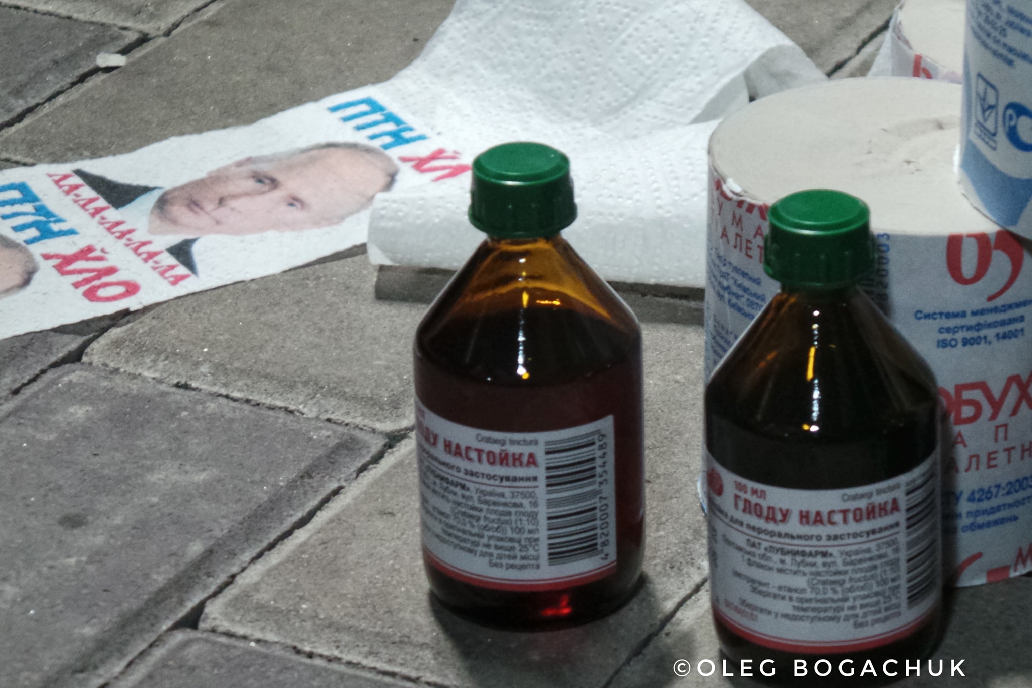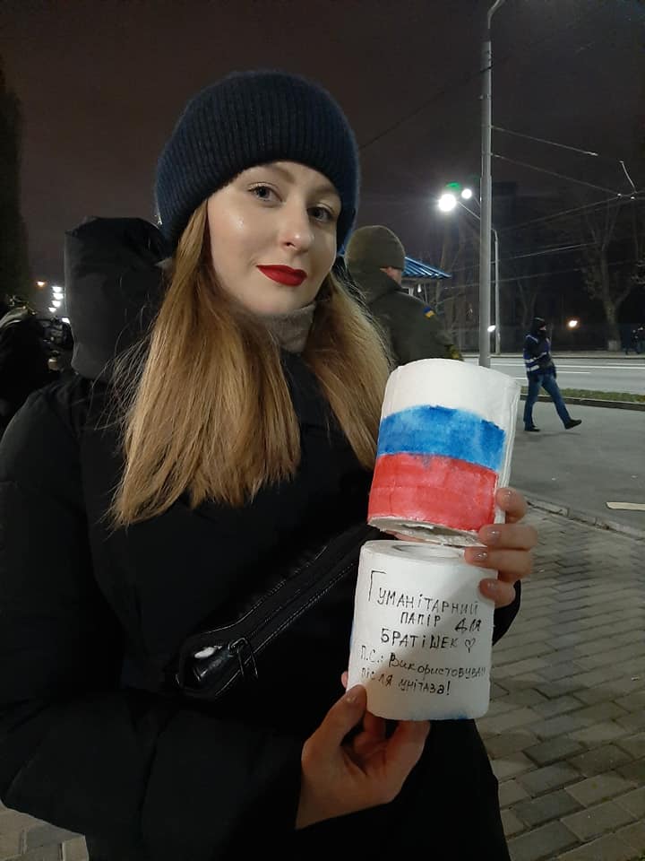 Пикетчики поддержали командование ВМСУ и вернувшихся по обмену из РФ моряков, утверждающих, будто на возвращенных из Крыма катерах пропали унитазы, туалетная бумага и нижнее бельё членов экипажей.