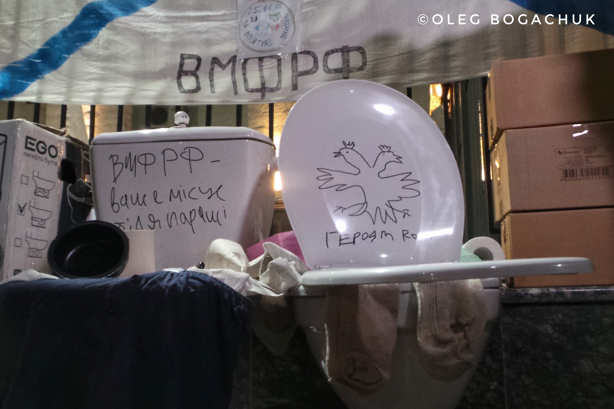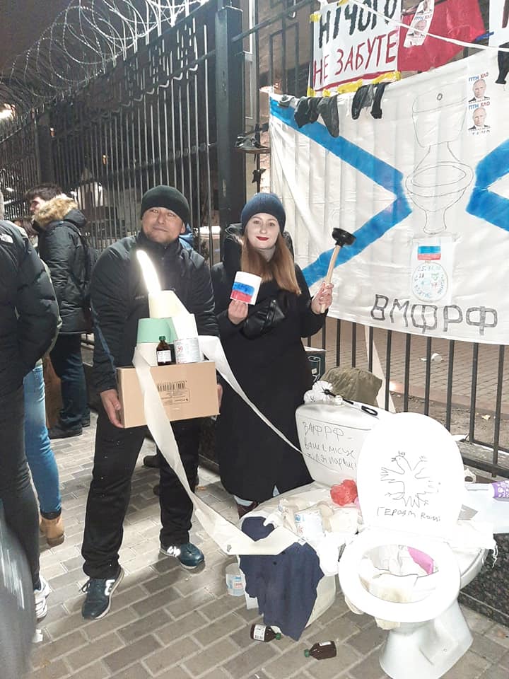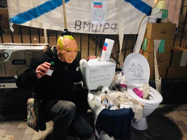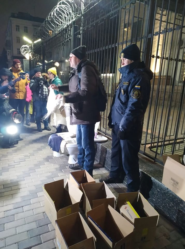 Нацозабоченные с унитазами провели акцию у посольства РФ в годовщину позорной сдачи