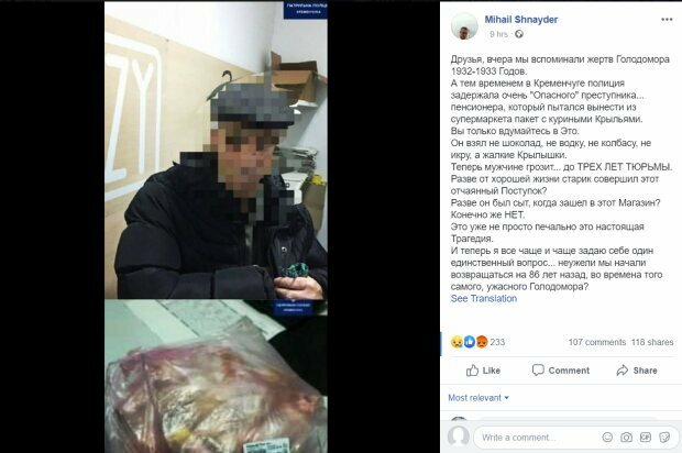 Это и есть голодомор: пенсионеру светит тюрьма за кражу еды в супермаркете | Киевлянке грозит до пяти лет за кражу сливочного масла в магазине