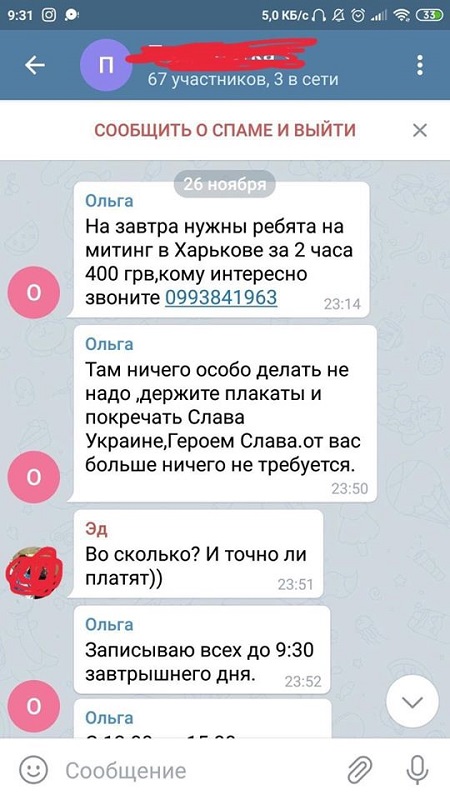 Как сообщил в Facebook директор Департамента по делам информации и связям с общественностью Юрий Сидоренко пару дней назад в сетевых чатах появилось объявление: 400 гривен за два часа «работы».
