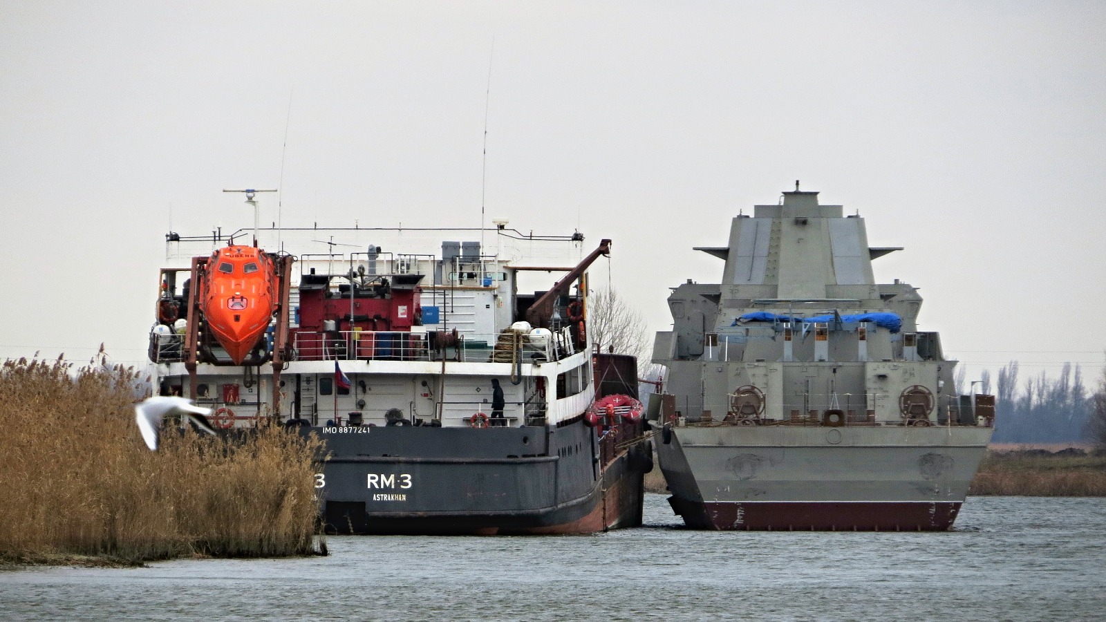 Малый ракетный корабль «Вихрь» (заводской номер 256) проекта 22800 во время буксировки по Дону с ФГУП "Судостроительный завод "Море" (Феодосия) к месту временной стоянки в Аксай (Ростовская область). Ростов-на-Дону, 20.11.2019 (с) RedJak / fleetphoto.ru