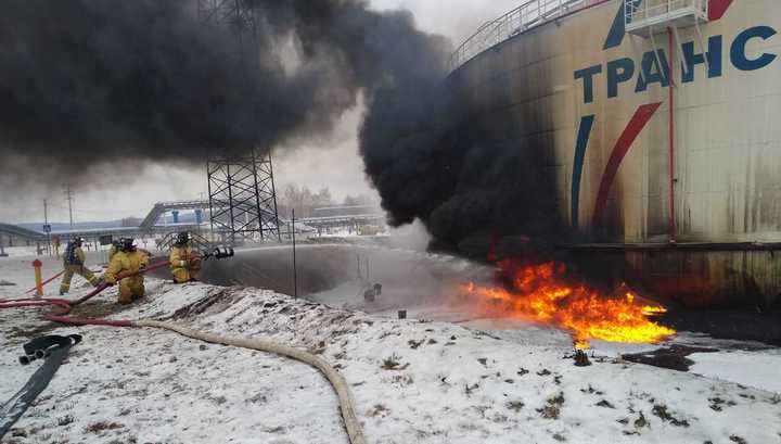 На предприятии "Транснефти" с утра велись работы по очистке пустовавшего резервуара объемом 20 тысяч кубометров. Около 10 часов вспыхнул пожар, а спустя несколько минут произошел взрыв. О его мощности можно судить по кадрам — цистерну оторвало от земли, словно ракету.