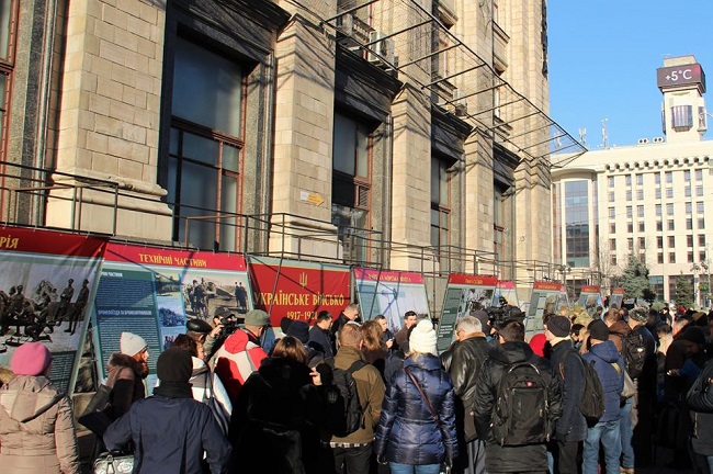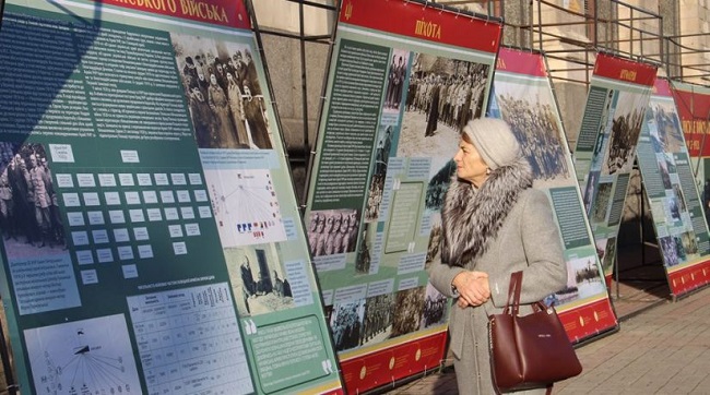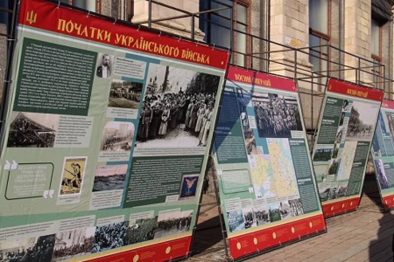 В Киеве на Крещатике возле Главпочтамта Институт национальной памяти проводит выставку, посвященную вооруженным формациям эпохи Украинской революции «Украинская армия: 1917-1921», которая в большинстве своём прославляет нацистских коллаборантов.