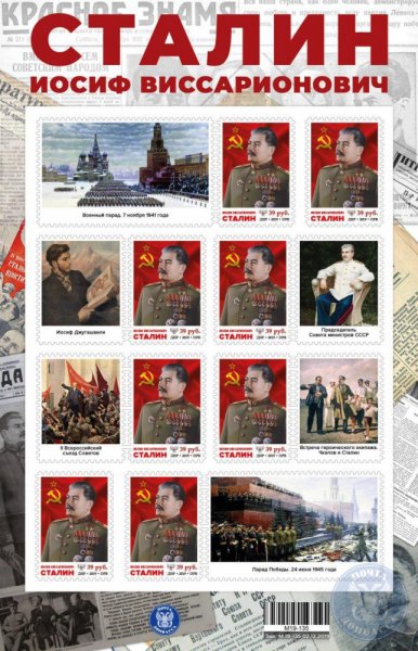Уточняется, что сегодня действует и применяется специальный почтовый штемпель первого дня, для оттиска штемпеля также выбрано портретное изображение Сталина. Цвет используемой мастики – черный.