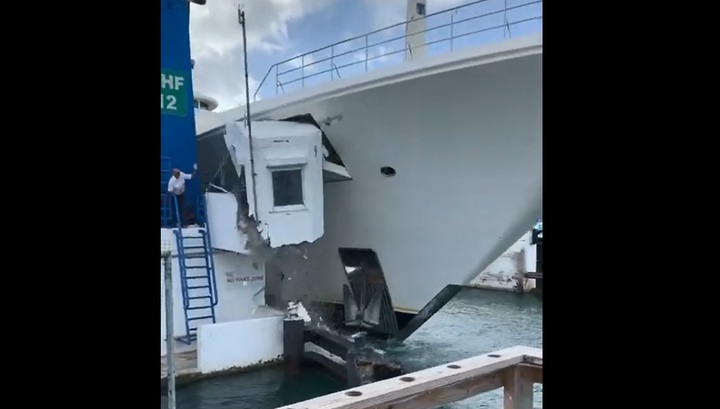 Судно, длиной 86 метров, попыталось зайти в порт на карибском острове Сен-Мартин, однако экипаж не справился с управлением, и яхта врезалась в мост. Основной удар пришел в будку смотрителя, который, впрочем, успел своевременно покинуть опасное место и не пострадал.