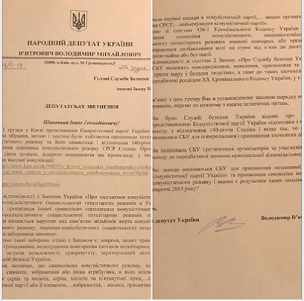 По его словам, ему неизвестно знала ли СБУ о запланированную конференцию. В письме к руководителю спецслужбы Ивана Баканова Вятрович призвал правоохранителей расследовать и привлечь к ответственности «участников собрания сталинистов». Источник