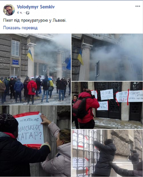 Протест начался возле памятника Тарасу Шевченко, националисты выразили своё недовольство обменом пленных, в частности освобождением бывших бойцов расформированного спецподразделения «Беркут». После митингующие двинулись к львовской прокуратуре, где зажгли дымовые шашки и скандировали «Незлой Майдан» и «Небесную сотню убили снова».