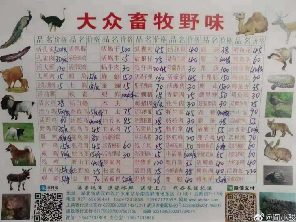 Большинство выявленных пациентов сообщили о том, что они посещали оптовый рынок морепродуктов Ухань Хуанань. В некоторых случаях сообщалось о визитах на другие продовольственные рынки в Ухани. В нескольких случаях не было прямой связи с продовольственным рынком. Оптовый рынок Ухань Хуанань был закрыт и продезинфицирован. На сегодняшний день продажа диких животных запрещена.