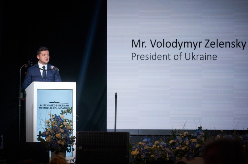 «Польша и польский народ первыми ощутили на себе последствия преступного сговора тоталитарных режимов. Это привело к началу Второй мировой войны и позволило нацистам запустить смертоносный маховик Холокоста», - заявил Зеленский во время визита в Польшу, посвященному 75-годовщине освобождения концлагеря Аушвиц-Биркенау.