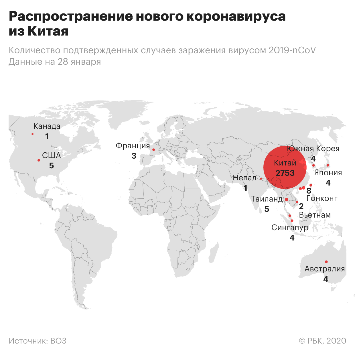 Вирус начал распространяться из города Ухань в Центральном Китае в конце декабря. В настоящий момент количество заболевших в стране превысило 2,8 тыс. человек, подтверждены 81 смерть от осложнений и 57 случаев выздоровления. Заражение коронавирусом подтверждено в Южной Корее, Японии, США, Франции, Непале, Таиланде, Австралии, Сингапуре. Источник
