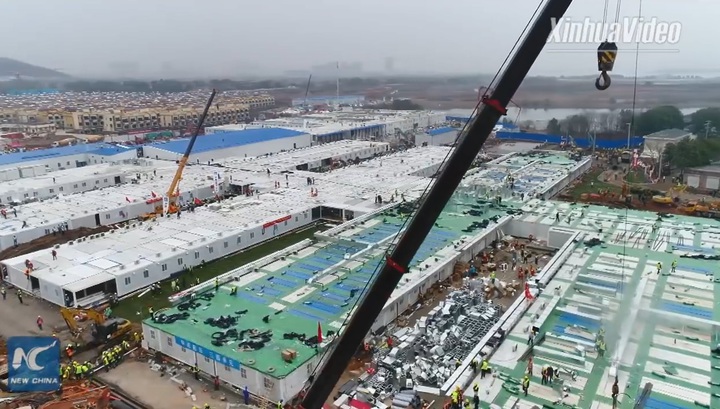 Китайские СМИ заявили о сдаче в эксплуатацию больничного комплекса, возведенного в Ухане в рекордно короткие сроки – на его строительство ушло десять дней.