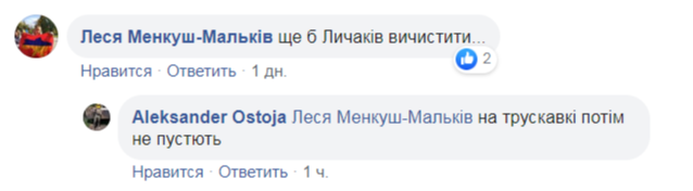 «Еще бы Лычаков вычистить», - заявила львовянка Леся Менкуш-Малькив, подразумевая, вероятно, Лычаковское кладбище, где на Марсовом поле захоронено 3800 советских солдат, погибших во Второй мировой войне.