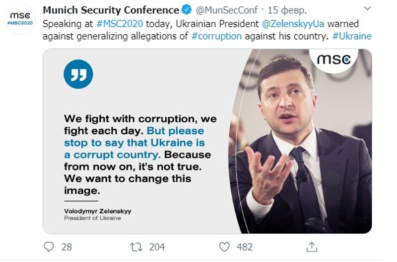 На выходных германские журналисты ожидаемо много писали о Мюнхенской конференции по безопасности, анализировали содержание речей выступающих, сигналы и тенденции. Но простой поиск по немецкоязычномым сайтам за последние два дня показывает, что местные СМИ не заметили присутствия на мероприятии украинского президента. Увы, но упоминание о выступлении Зеленского можно найти разве что на сайте Конференции: «Мы боремся с коррупцией, боремся каждый день. Но, пожалуйста, перестаньте говорить, что Украина коррумпированная страна. Потому что с настоящего момента это неправда. Мы хотим поменять этот имидж», - цитирует украинского лидера твиттер организации.